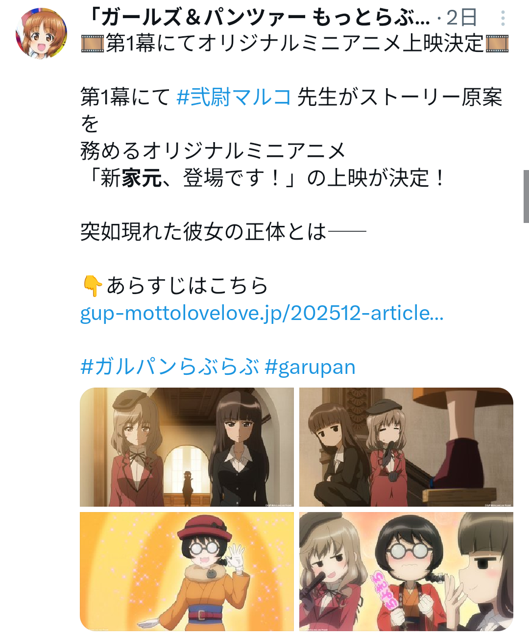 | … | 25無題Nameとしあき 25/12/14(日)23:25:05No.10092199+ 1765722305589.png-(1173256 B) >ミニだか家元メイン短編やるとは思わなかったぞ |