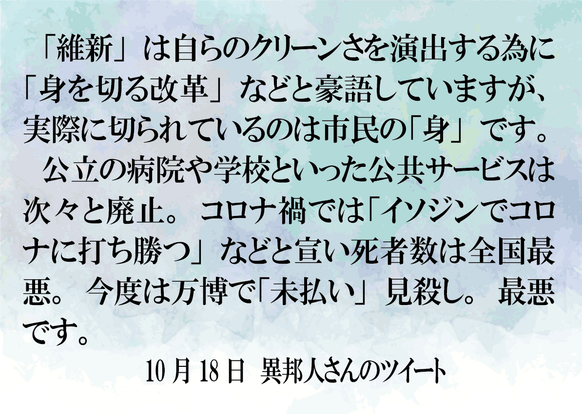 維新は、自民党の菅義偉が支配する政党。菅義偉は、統一教会直系政治家。つまり、維新も酸性も統一教会の下部団体。