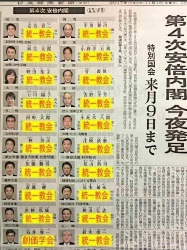 今、高市早苗がでっち上げようとしているのは、統一教会直営奴隷内閣です。レス1件省略。全て読むには返信ボタンを押してください。