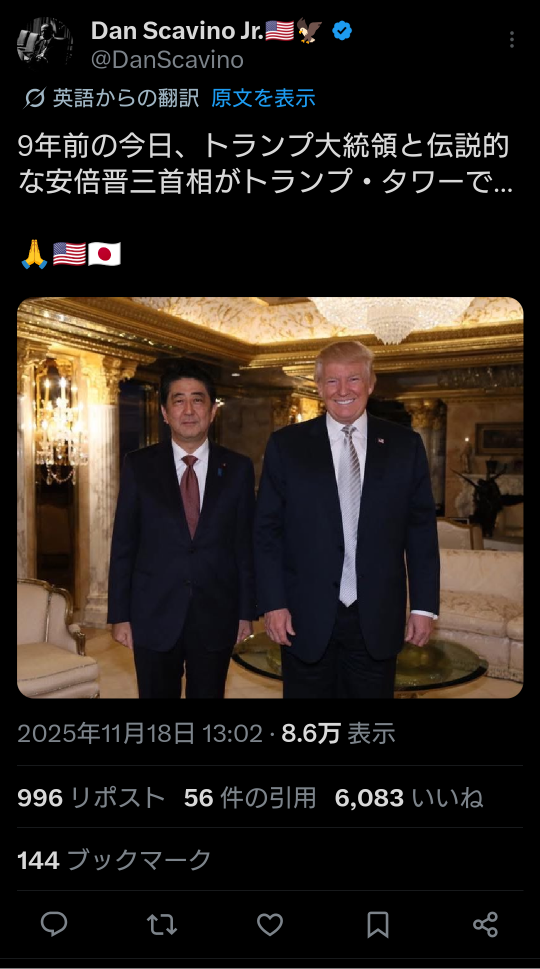 | … | 246無題Name名無し 25/11/18(火)19:58:02 IP:106.146.*(au-net.ne.jp)No.2677307そうだねx1 1763463482142.png-(362017 B) https://x.com/DanScavino/status/1990631736917528900 |
