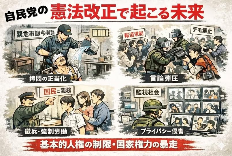 「2026年衆院選は、高市一味の目論む緊急事態条項強行による独裁国家化と日中戦争開戦のための計略。
