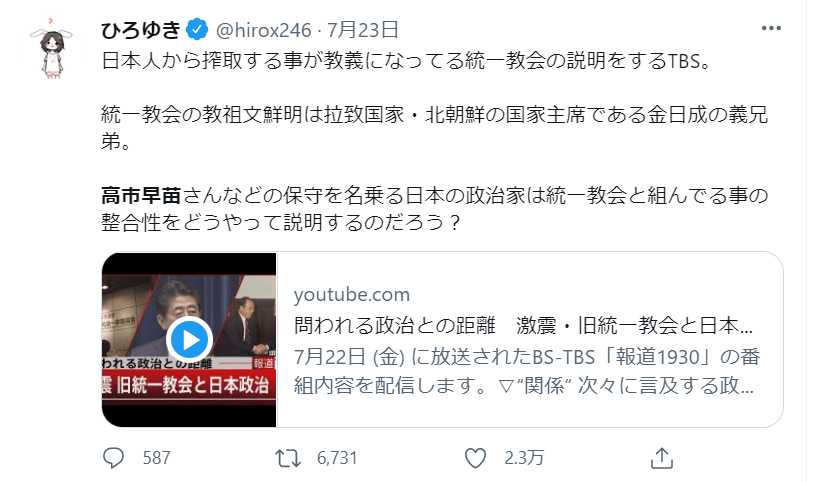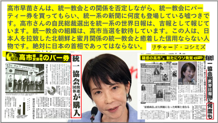 高市と同様に、統一教会に支配されています。