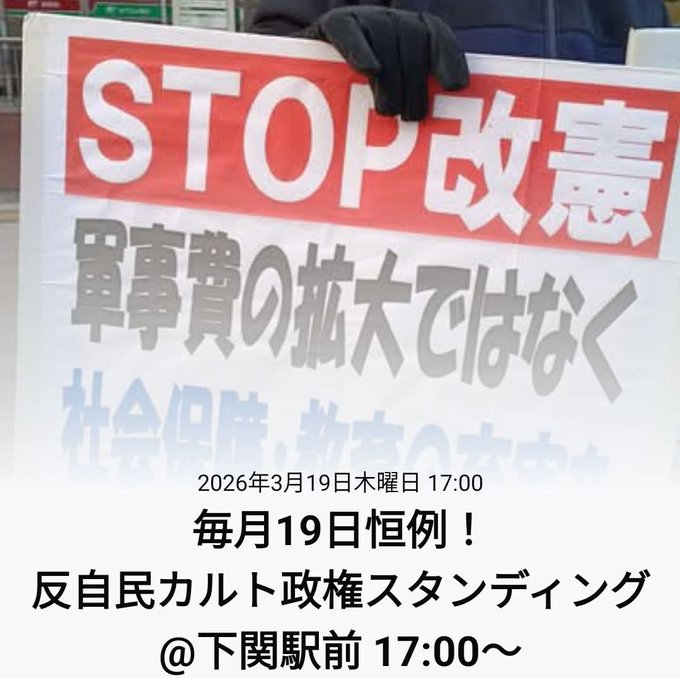 | … | 46無題Name名無し 26/03/19(木)22:17:40 IP:58.158.*(ucom.ne.jp)No.2708307+熱い下関市民の集まり |