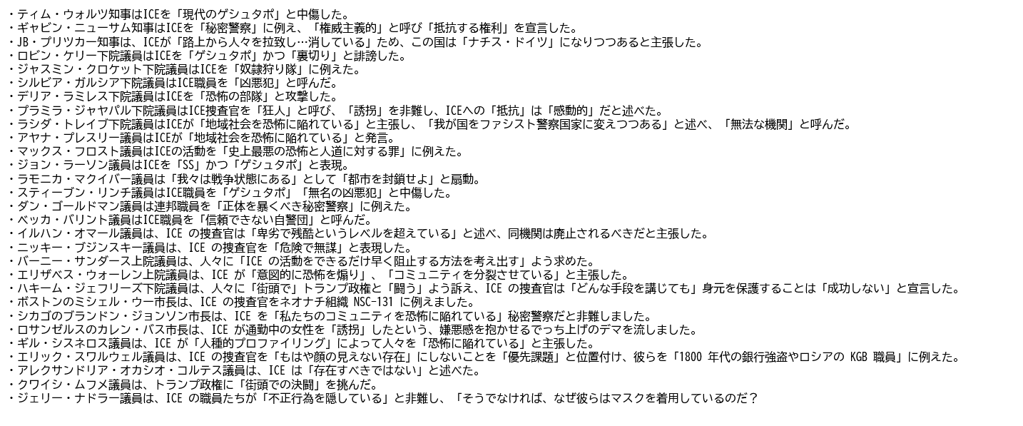 | … | 997無題Name名無し 25/10/06(月)17:40:51 IP:1.73.*(spmode.ne.jp)No.2665563そうだねx1違法デモや妨害行為で悪名高いこの過激派組織は、キャピタル・リサーチ・センター(CRC)の衝撃的な報告書で取り上げられ、ソロスがサンライズのようなテロ支援組織に8000万ドルを寄付した経緯を詳述した。このCRCの報告書は、司法省が検察官に対し、ソロスのオープン・ソサエティ財団の捜査計画を策定するよう指示する口実となった。 |