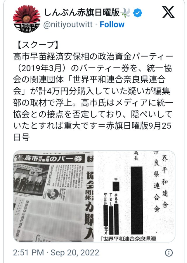 ●裏金議員を積極登用。高市内閣は、統一邪教の食口だらけになる。