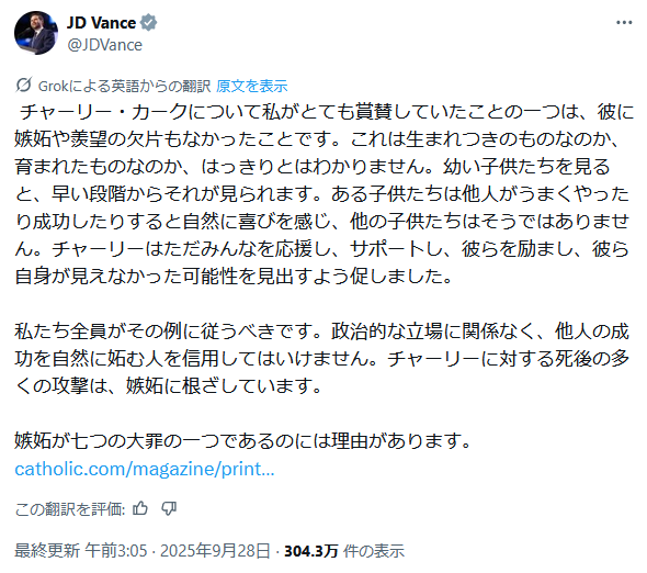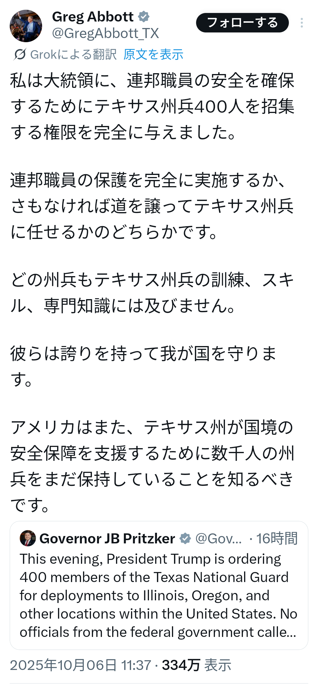 … | 292無題Name名無し 25/10/07(火)01:57:15 IP:117.55.*(ipv4)No.2665721そうだねx1>https://truthsocial.com/@realDonaldTrump/115327555965429625 |