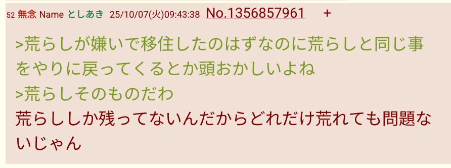… | 264無題Name名無し 25/10/06(月)22:42:40 IP:119.238.*(mesh.ad.jp)No.2665670そうだねx8>頭抱えるレスって意図的に出すの難しいと思う |