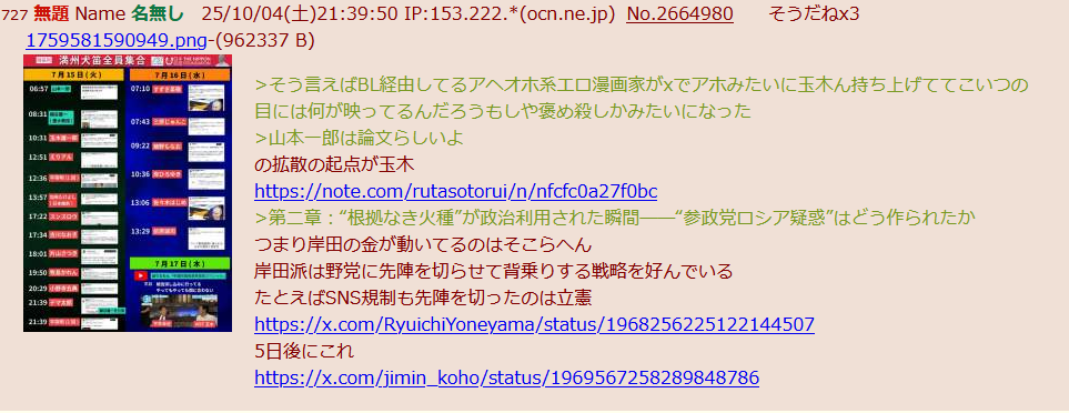 … | 48無題Name名無し 25/10/05(日)22:12:16 IP:49.109.*(spmode.ne.jp)No.2665355そうだねx26デマに惑わされないで! |