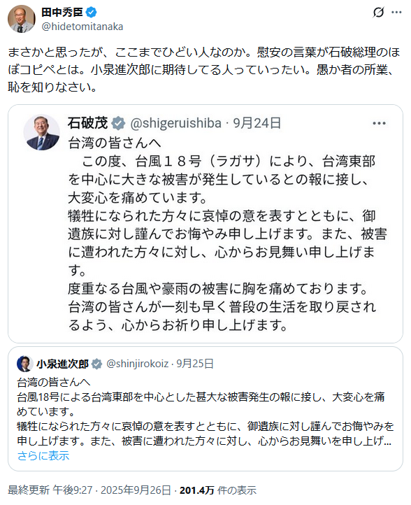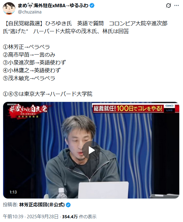| … | 56無題Name名無し 25/10/05(日)22:31:24 IP:14.3.*(asahi-net.or.jp)No.2665365そうだねx13結果を真摯に受け止めこれからも一議員として国民のために・・・ |