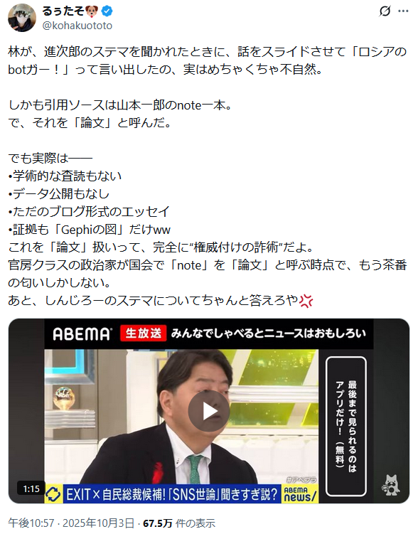 | … | 45無題Name名無し 25/10/05(日)22:08:53 IP:150.249.*(nuro.jp)No.2665352そうだねx21 1759669733735.png-(595609 B) https://x.com/tweet_tokyo_web/status/1974744876169507031 |