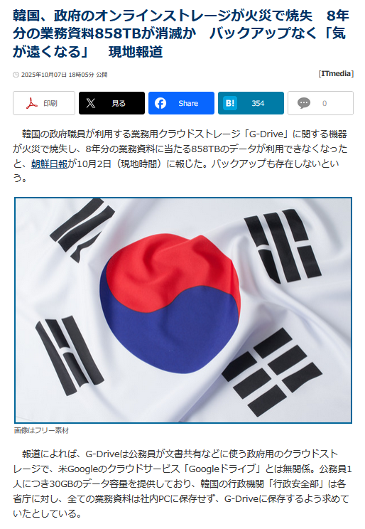 | … | 976無題Name名無し 25/10/09(木)14:14:47 IP:60.104.*(bbtec.net)No.2666631そうだねx7>韓国みたいに全部クラウド保存強制させたら良いんだ! |