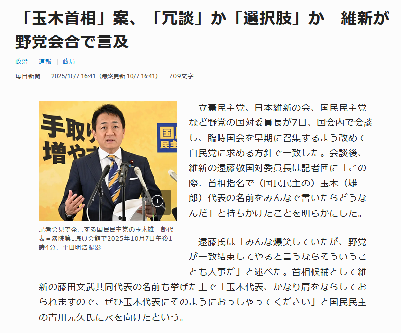 | … | 905無題Name名無し 25/10/09(木)07:13:03 IP:106.150.*(dion.ne.jp)No.2666554そうだねx1 1759961583640.jpg-(106756 B) 臨時国会召集21日軸に調整、自公連立合意難航で遅れ 公明代表が企業献金規制強化を要求 |