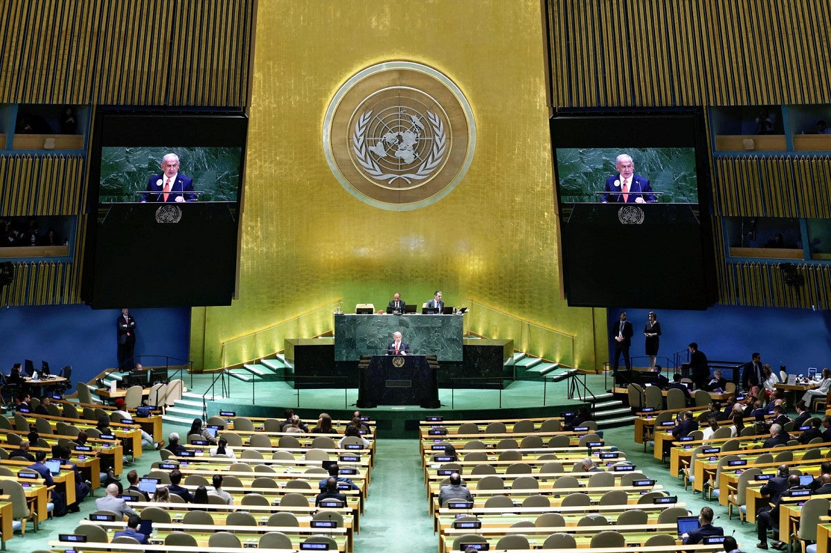 イスラエルのベンヤミン・ネタニヤフ首相は26日、米ニューヨークで開かれている国連総会の一般討論演説で、英仏などによるパレスチナ国家の承認について「恥ずべき決定で、テロを助長する」と批判した。ただ、登壇時に各国の外交団が議場から一斉に退席するなど、イスラエルの国際社会での孤立が鮮明となった。