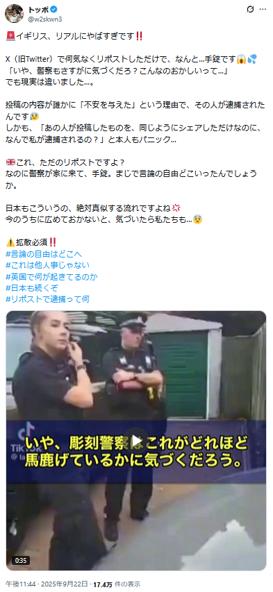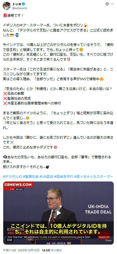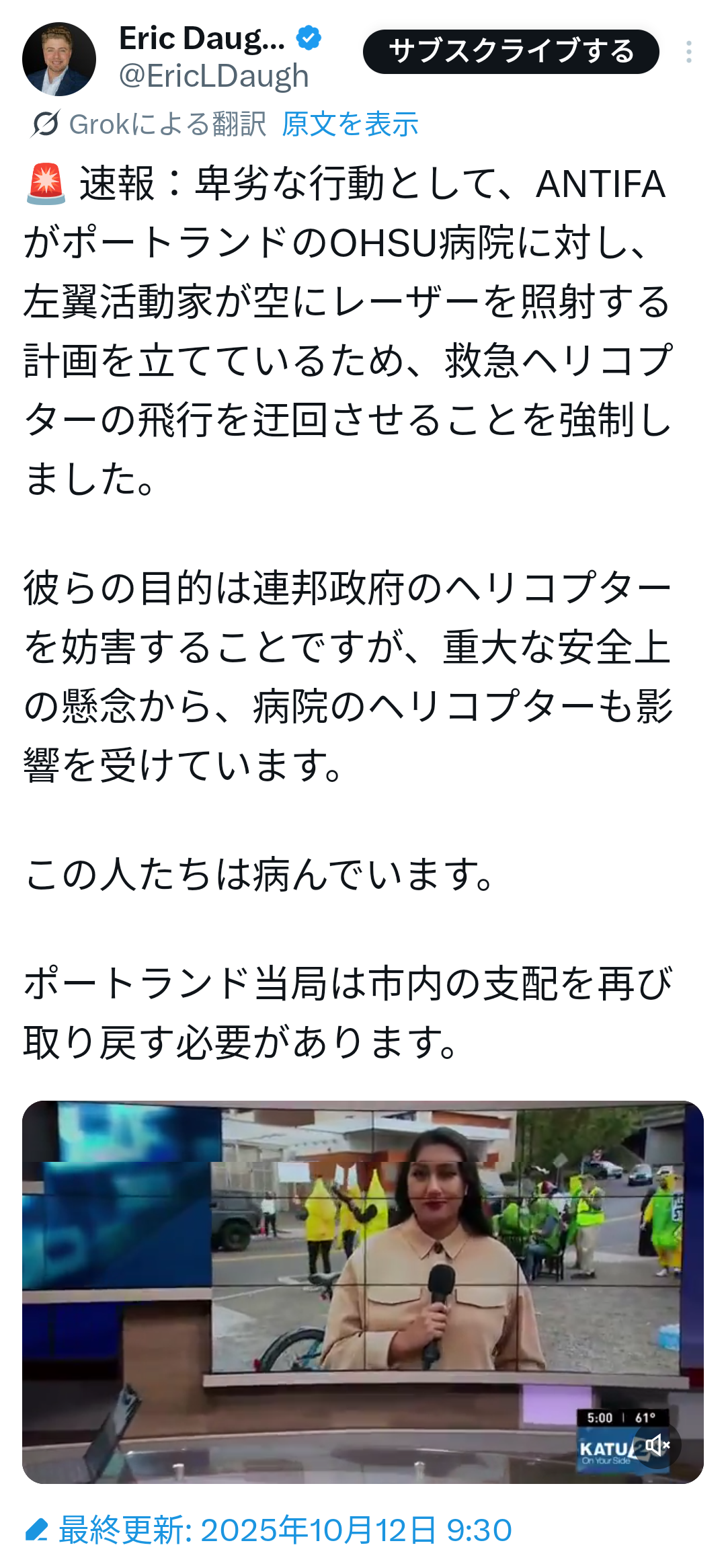 | … | 27無題Name名無し 25/10/09(木)17:55:48 IP:124.212.*(dion.ne.jp)No.2666745そうだねx9 1760000148401.png-(604338 B) >.@FBIDirectorKashがアンティファについて発言:「我々、このFBIは、犯罪者を徹底的に追跡します。すべての種子——資金、寄付者、組織、資金調達の仕組み——を見つけるまで休息しません…」 |