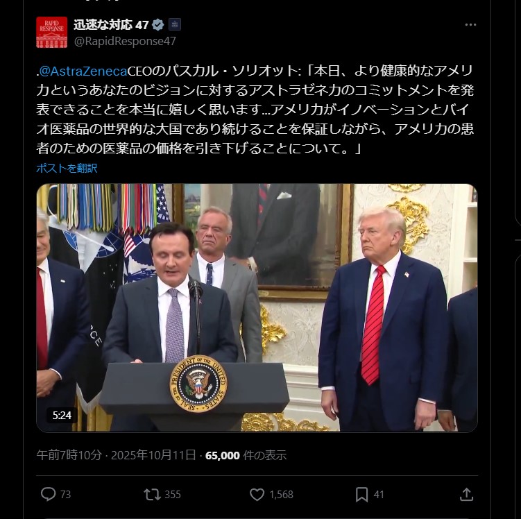 | … | 987無題Name名無し 25/10/13(月)07:30:39 IP:106.150.*(dion.ne.jp)No.2667999+ 1760308239486.png-(966335 B) 米中関係「心配いらず」 トランプ氏、追加関税巡り |