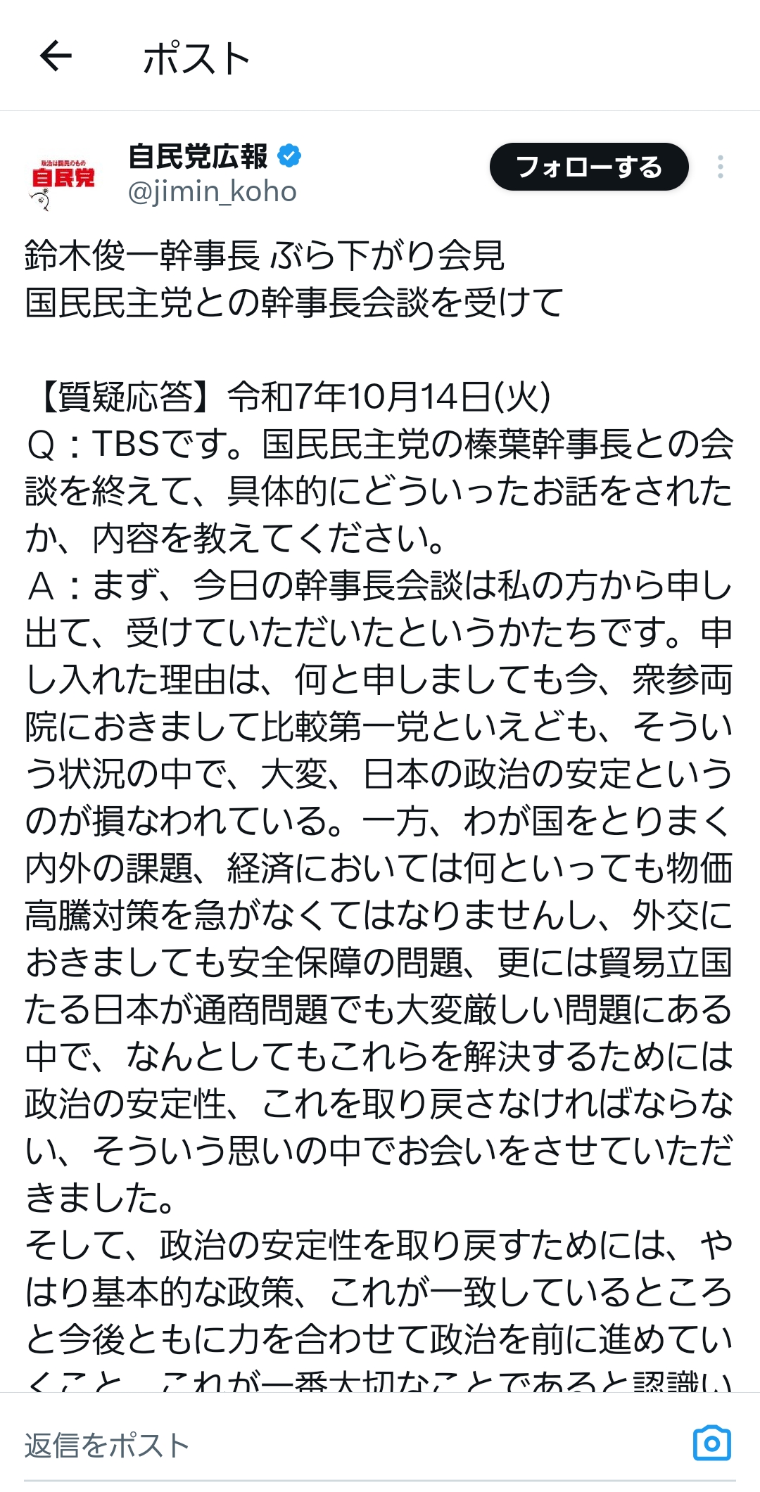 | … | 933無題Name名無し 25/10/17(金)22:25:14 IP:126.158.*(openmobile.ne.jp)No.2669422そうだねx1>>離党者がどこに行ったかで意図を読み取れそう |