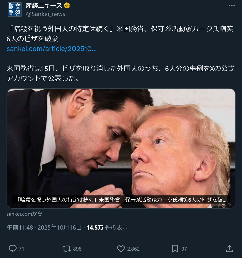 | … | 931無題Name名無し 25/10/17(金)22:21:55 IP:217.178.*(transix.jp)No.2669420そうだねx3>アメリカでは帰化2世までは国政に関われないという話も聞くし |