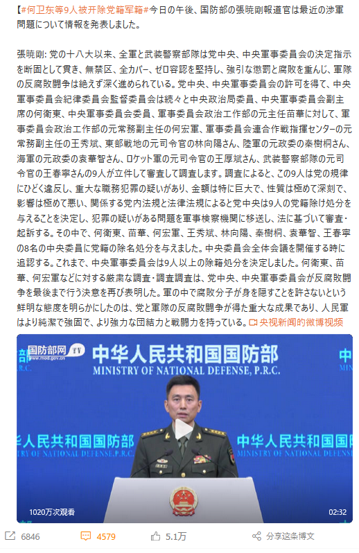 | … | 929無題Name名無し 25/10/17(金)22:06:52 IP:202.70.*(oninet.ne.jp)No.2669418そうだねx1>>中央軍事委の委員だった苗華氏、中国軍で台湾方面を管轄する東部戦区司令官を務めた林向陽氏も粛清対象となった。 |