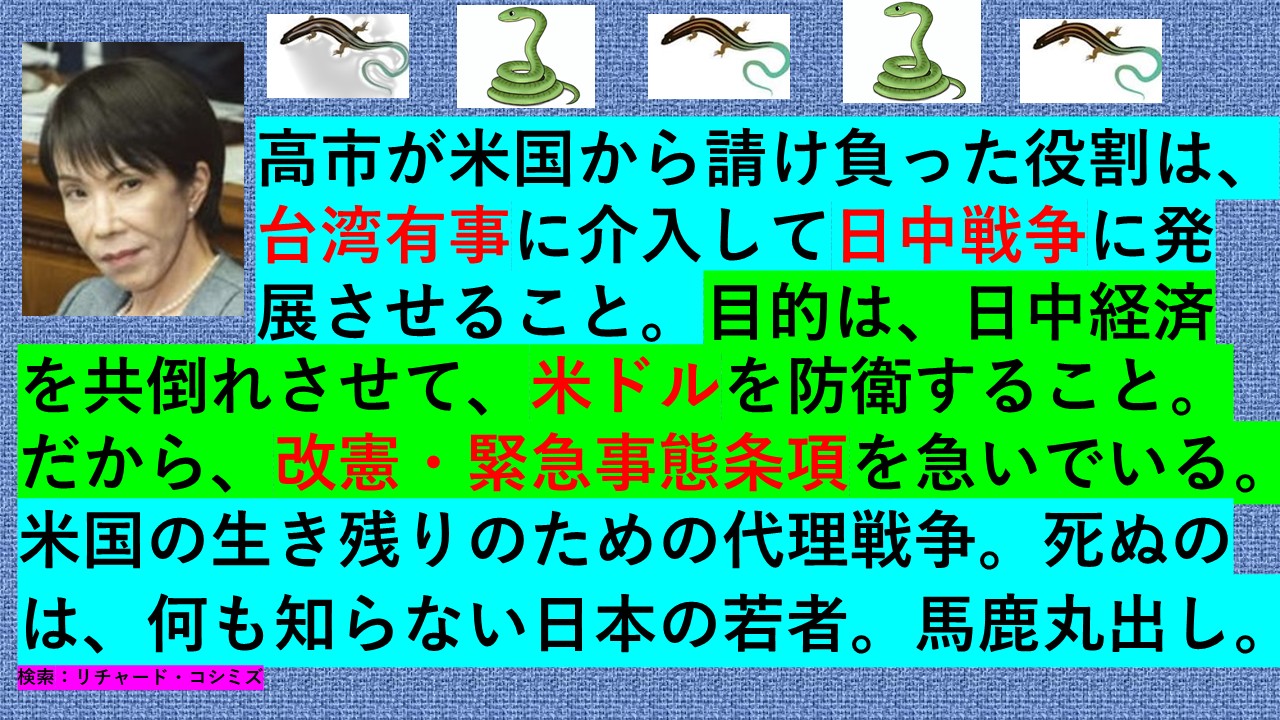高市の役割☞台湾有事に介入し日中戦争に発展させる