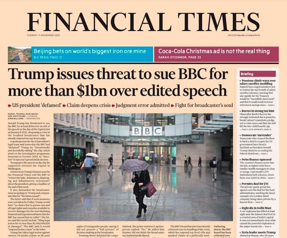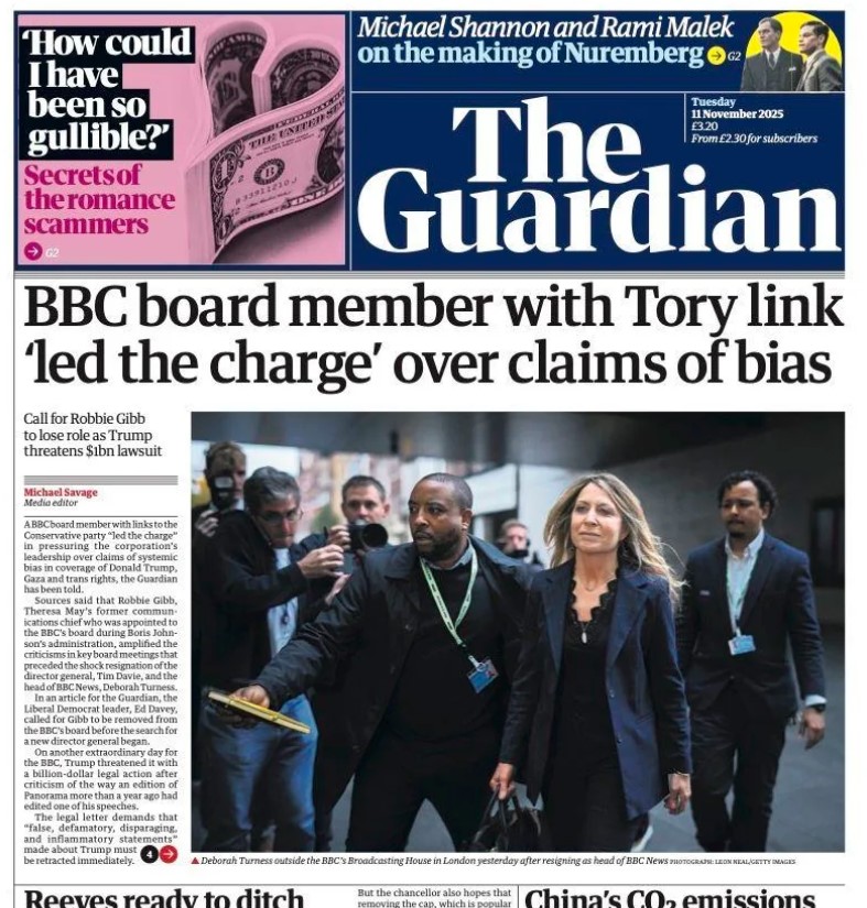 | … | 99無題Name名無し 25/11/11(火)19:54:27 IP:153.232.*(dti.ne.jp)No.2675569そうだねx1>>ガーディアンやフィナンシャル・タイムズといった有力英紙の記者、また一部のBBC職員などは、今回の問題の背後にBBCに打撃を与えるための右派勢力による組織的な行動があったとの見方をしている。 |