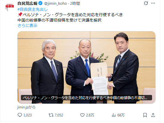 | … | 128無題Name名無し 25/11/11(火)22:30:31 IP:125.193.*(mesh.ad.jp)No.2675600そうだねx2 1762867831182.jpg-(118929 B) 例の中国総領事に対して |