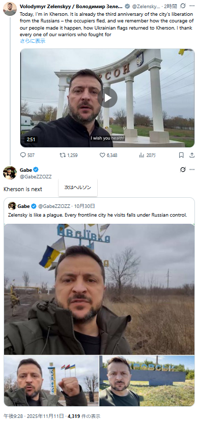 | … | 35無題Name名無し 25/11/11(火)14:02:10 IP:14.13.*(enabler.ne.jp)No.2675446そうだねx1ウクライナ国内にも動き有り |