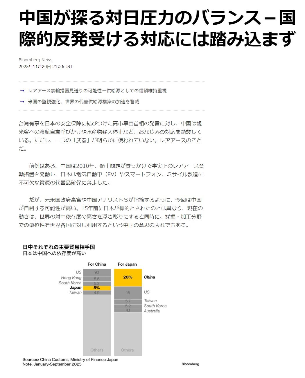 【速報】中国政府「今回はこの辺にしとくわ」急にビビり始めてレアアース制裁見送りへwwwwwwww