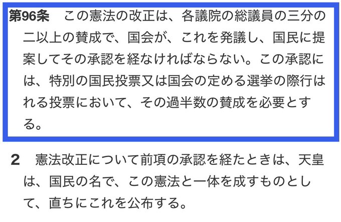 国会で憲法改正が承認されれば、あとは、国民の半分の賛同で、改憲できる。