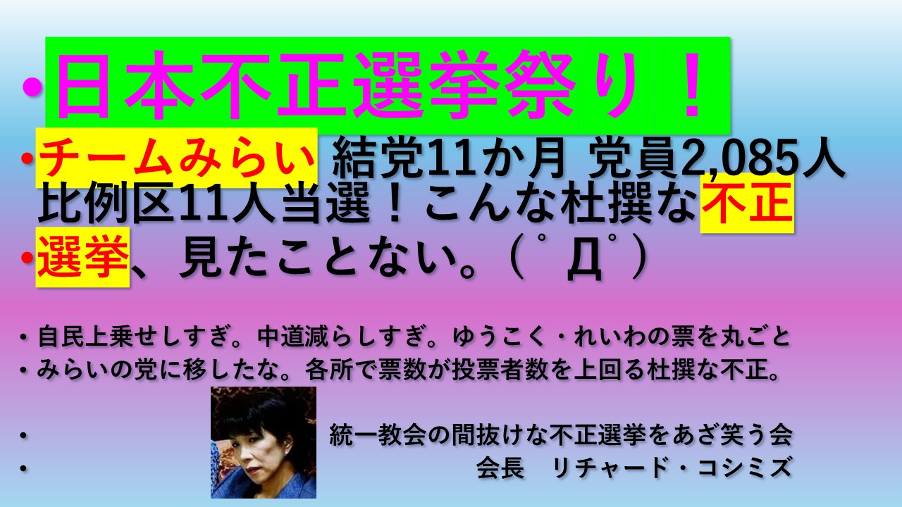 馬鹿でもわかる大規模不正選挙、楽しませてもらっています。カルト宗教さん、ありがとうございます。☻https://x.com/ric_koshimizu/status/2021118521036751046