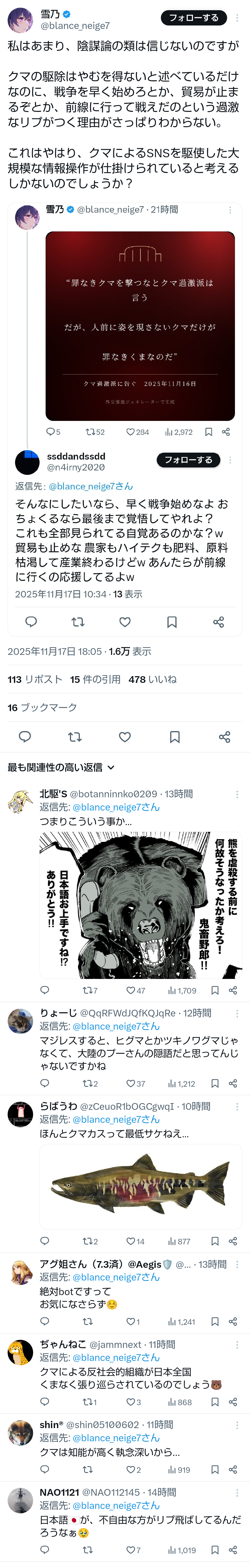| … | 1無題Name名無し 25/11/12(水)14:53:03No.759349+提言では「クマ被害は人の生活圏で発生するなど |