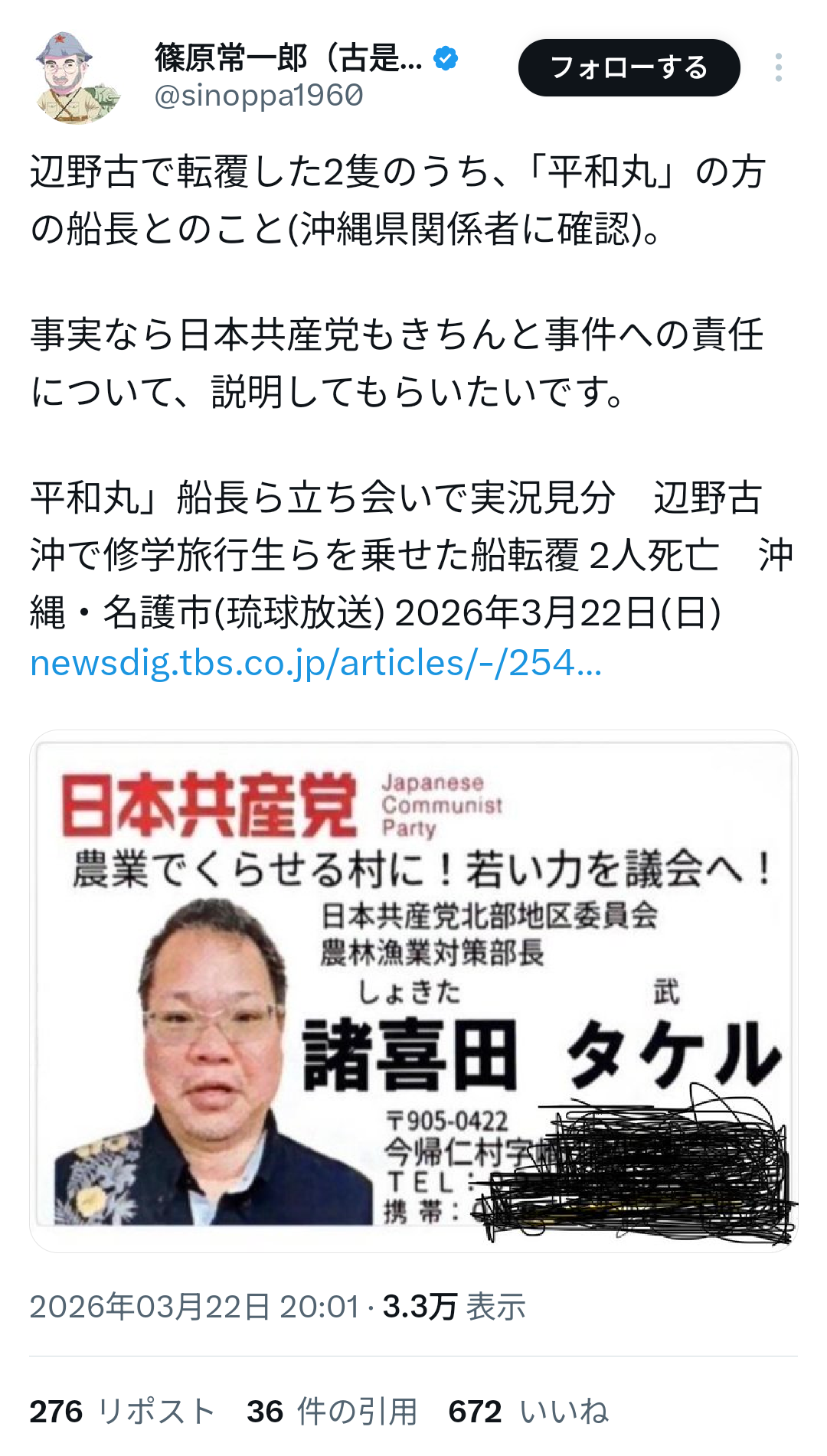 | … | 4無題Name名無し 26/03/23(月)14:33:30No.788841+マスメディアにとって共産党は不可侵団体なんだね |