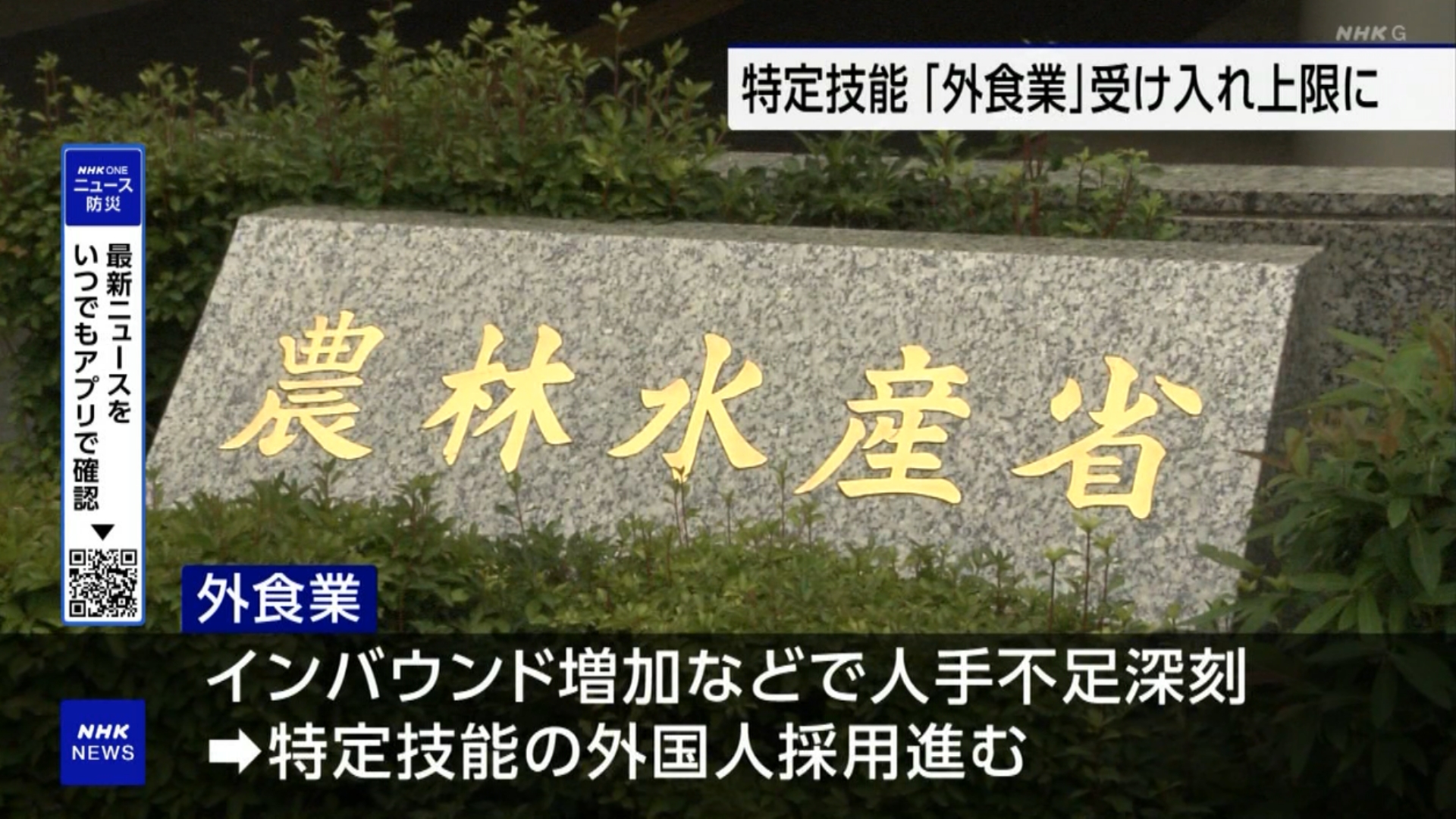 1号については現在、政府が19の分野ごとに受け入れ人数を定めている。国内の雇用への悪影響を抑えるねらいがある。出入国在留管理庁(入管庁)によると、受け入れの停止は、22年の産業機械製造業分野に続いて2例目。