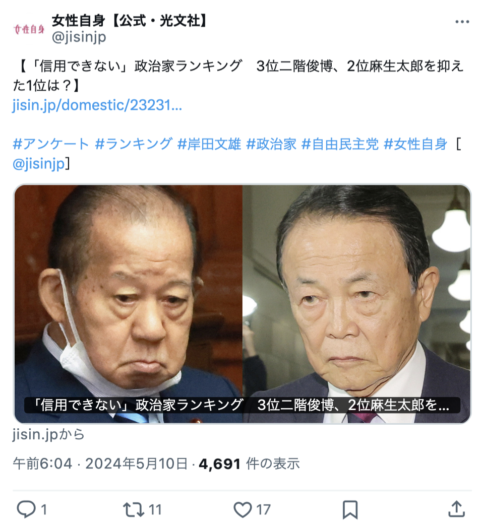 | … | 17無題Name名無し 25/11/14(金)23:42:02No.759784+自民党のやる順番が富裕層から優遇だもんね |