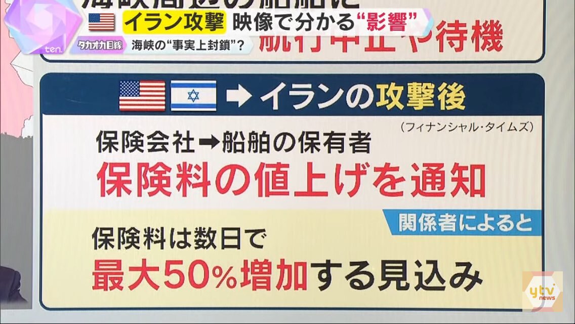 日本郵船、商船三井、川崎汽船の海運大手3社は1日までに、中東のエネルギー輸送の要衝であるホルムズ海峡の航行停止を決めた。米国とイスラエルによるイランへの攻撃を受けた措置。日本は原油の9割を中東から調達し、多くの輸送船がホルムズ海峡を通過する。航行停止が長引けば、エネルギー供給や価格への影響が懸念される。レス6件省略。全て読むには返信ボタンを押してください。