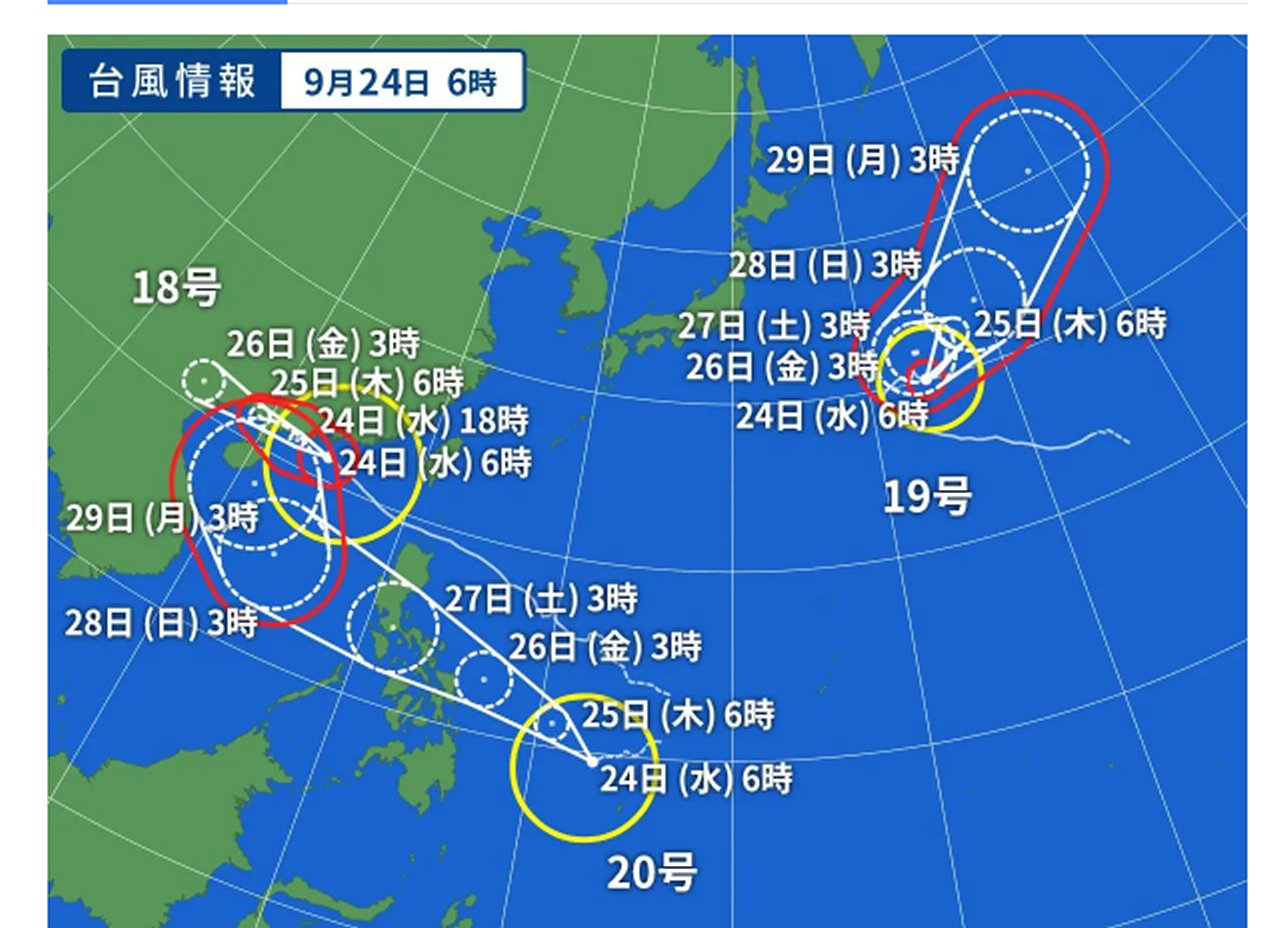 で、(19号の影響で)20号が18号を追っかけてるから