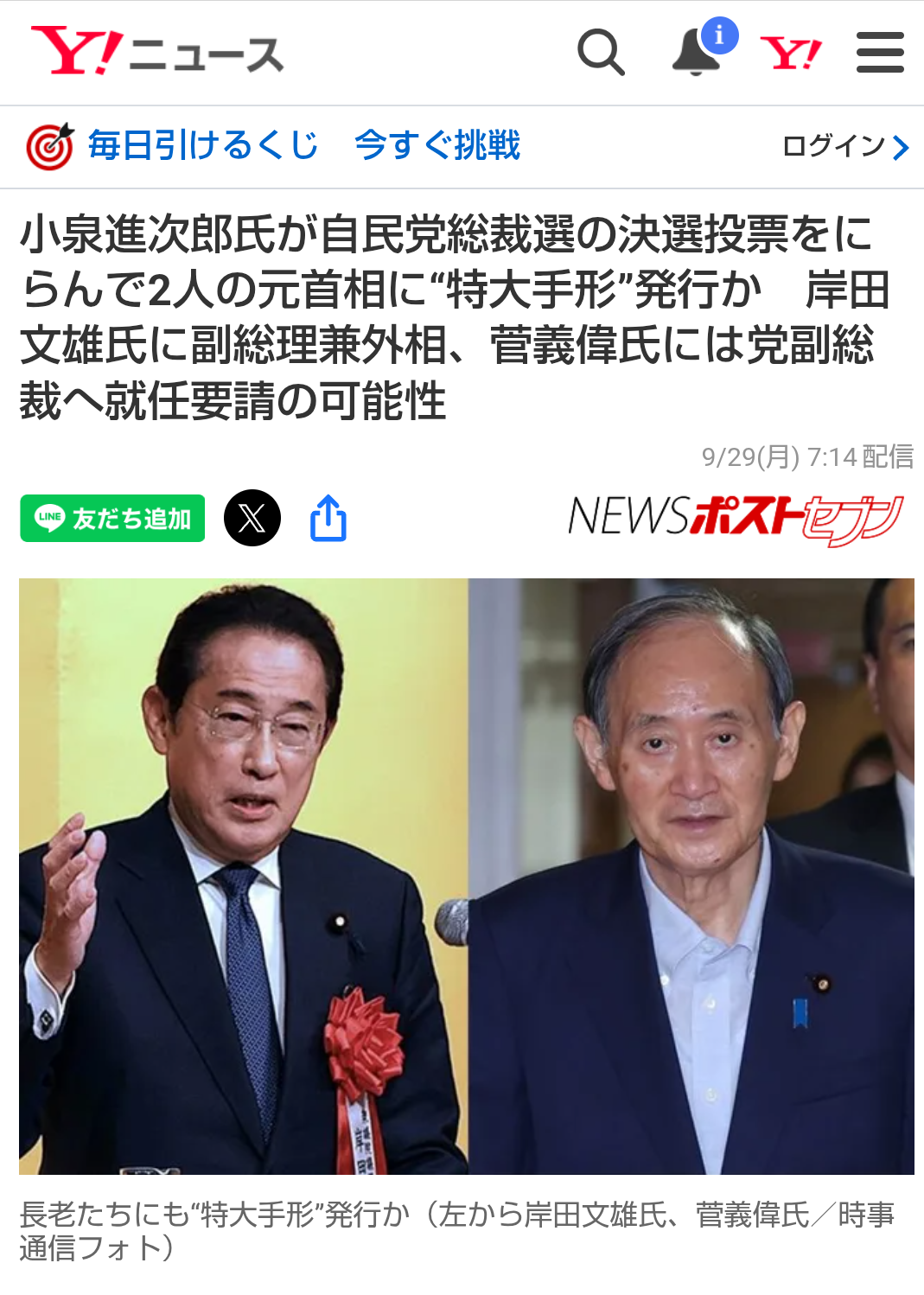 … | 46無題Name名無し 25/09/29(月)11:44:09No.747883+ 1759113849874.png-(813690 B) ![]() >小泉進次郎氏が自民党総裁選の決選投票をにらんで2人の元首相に“特大手形”発行か 岸田文雄氏に副総理兼外相、菅義偉氏には党副総裁へ就任要請の可能性 |