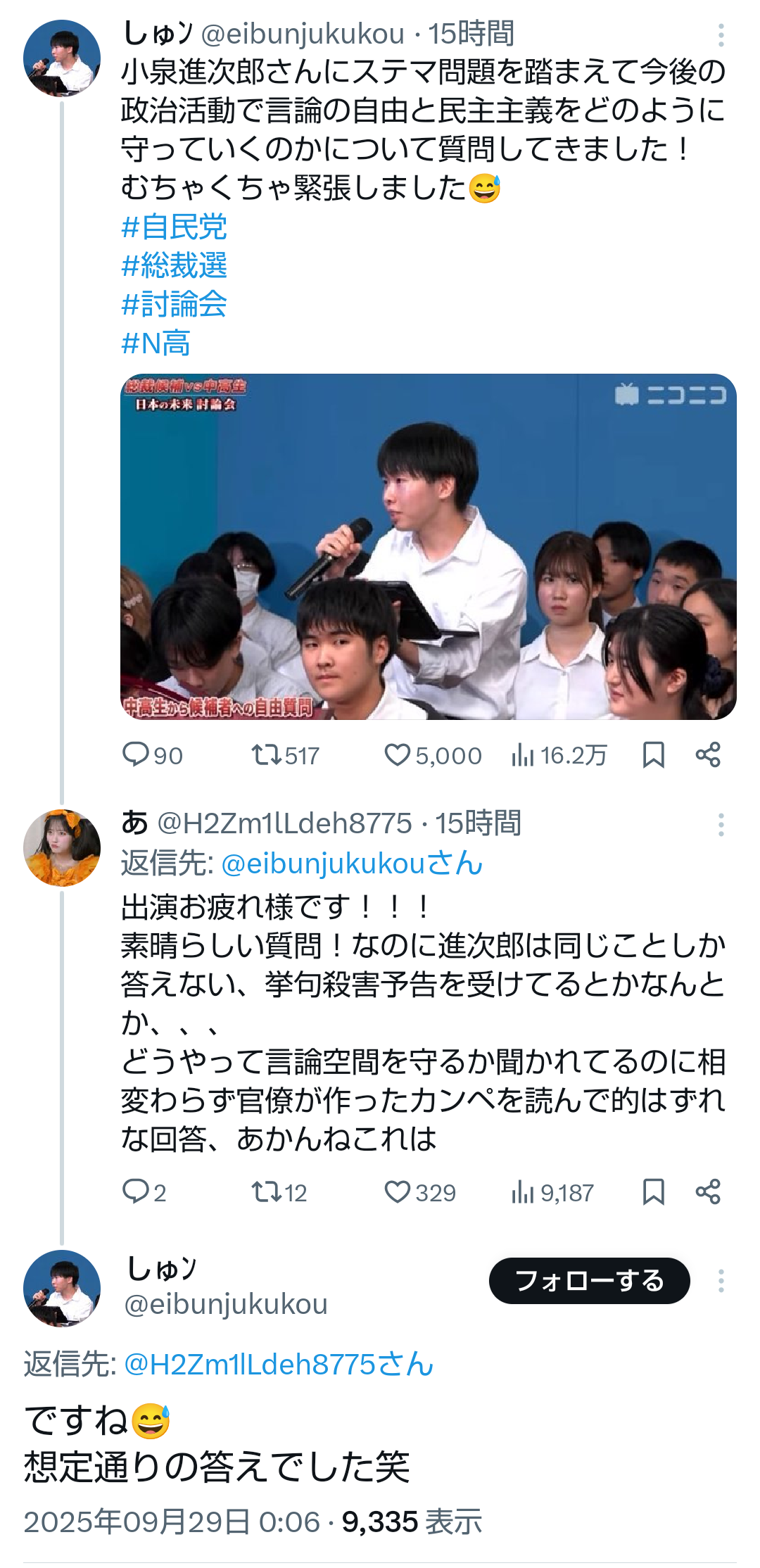 … | 24無題Name名無し 25/09/29(月)09:20:20No.747861+中高生にも正面から向き合わない総理候補って…恥ずかしいわ |