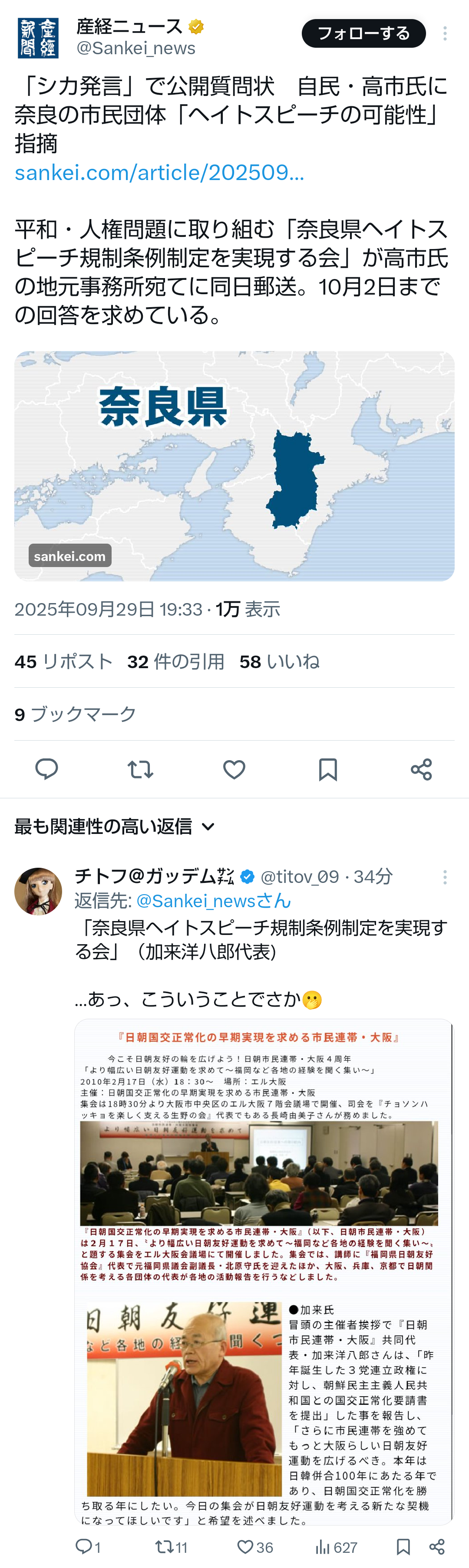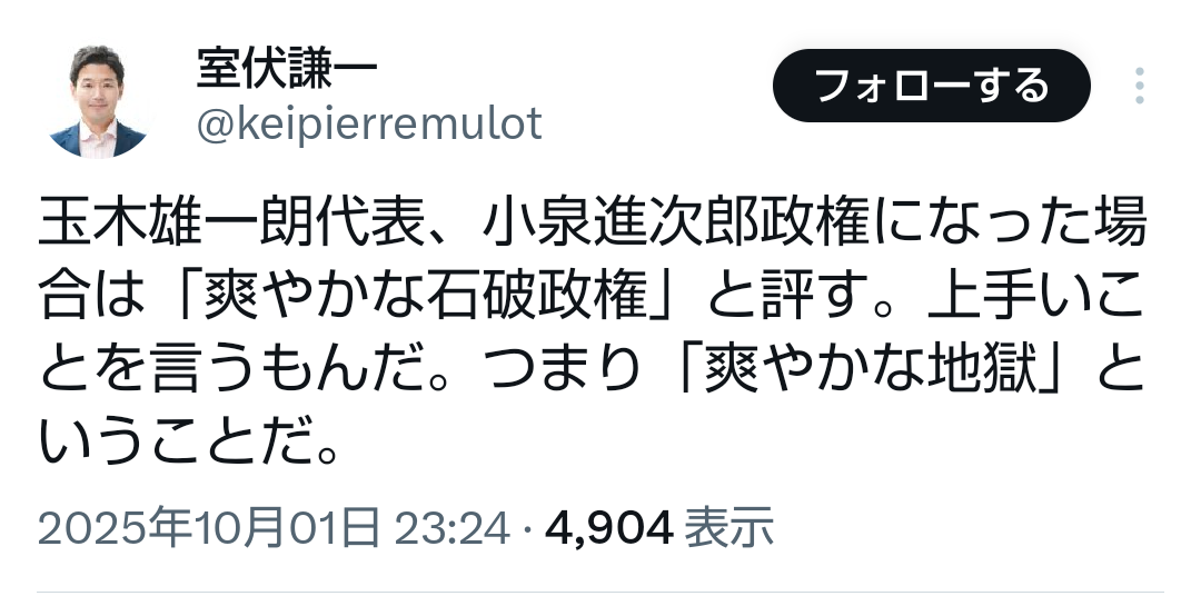 … | 60無題Name名無し 25/09/29(月)13:43:04No.747897そうだねx11>兵庫知事の斎藤が言論の自由について似たような見解出してたときは |