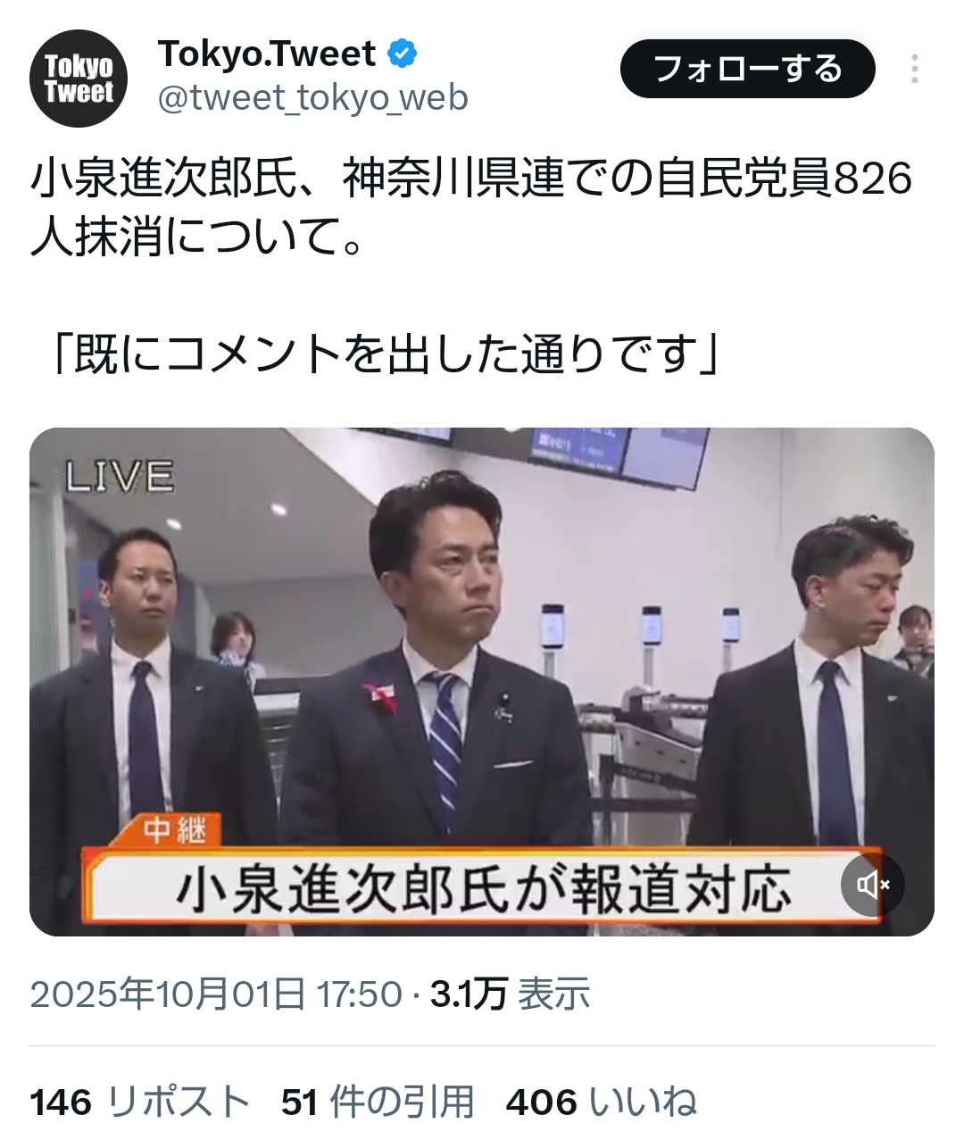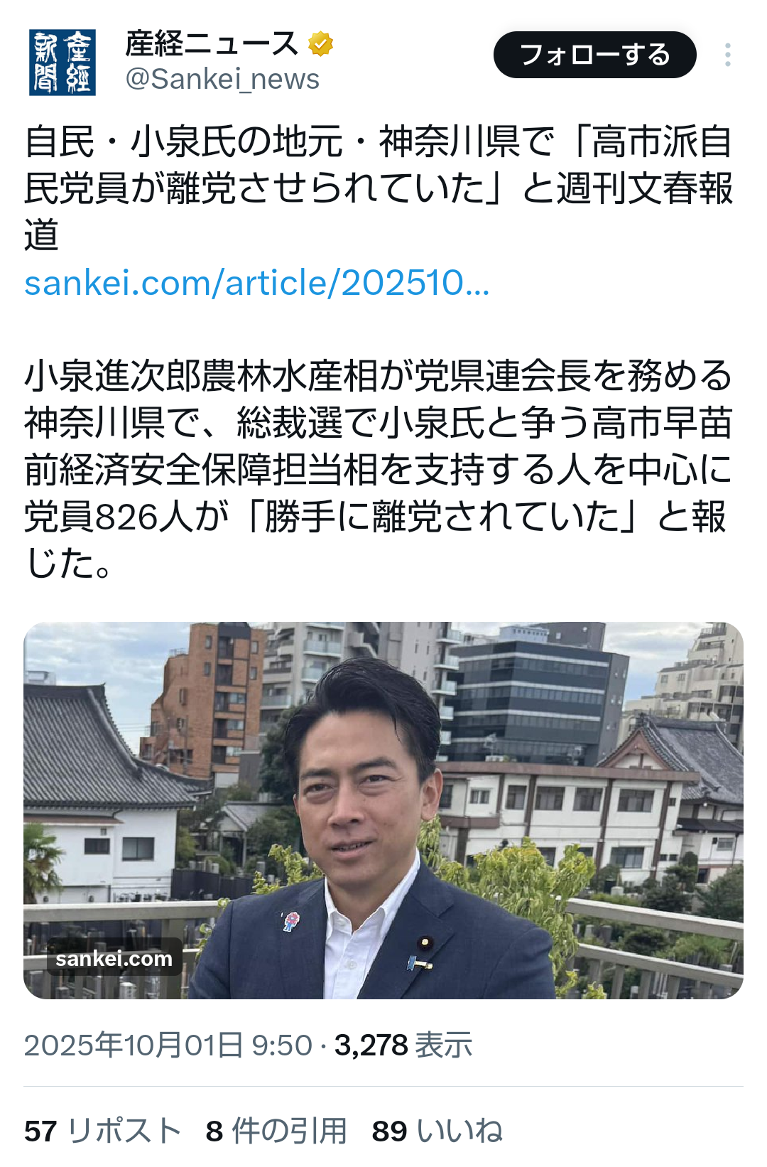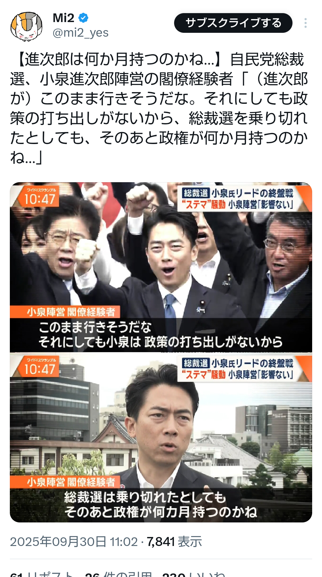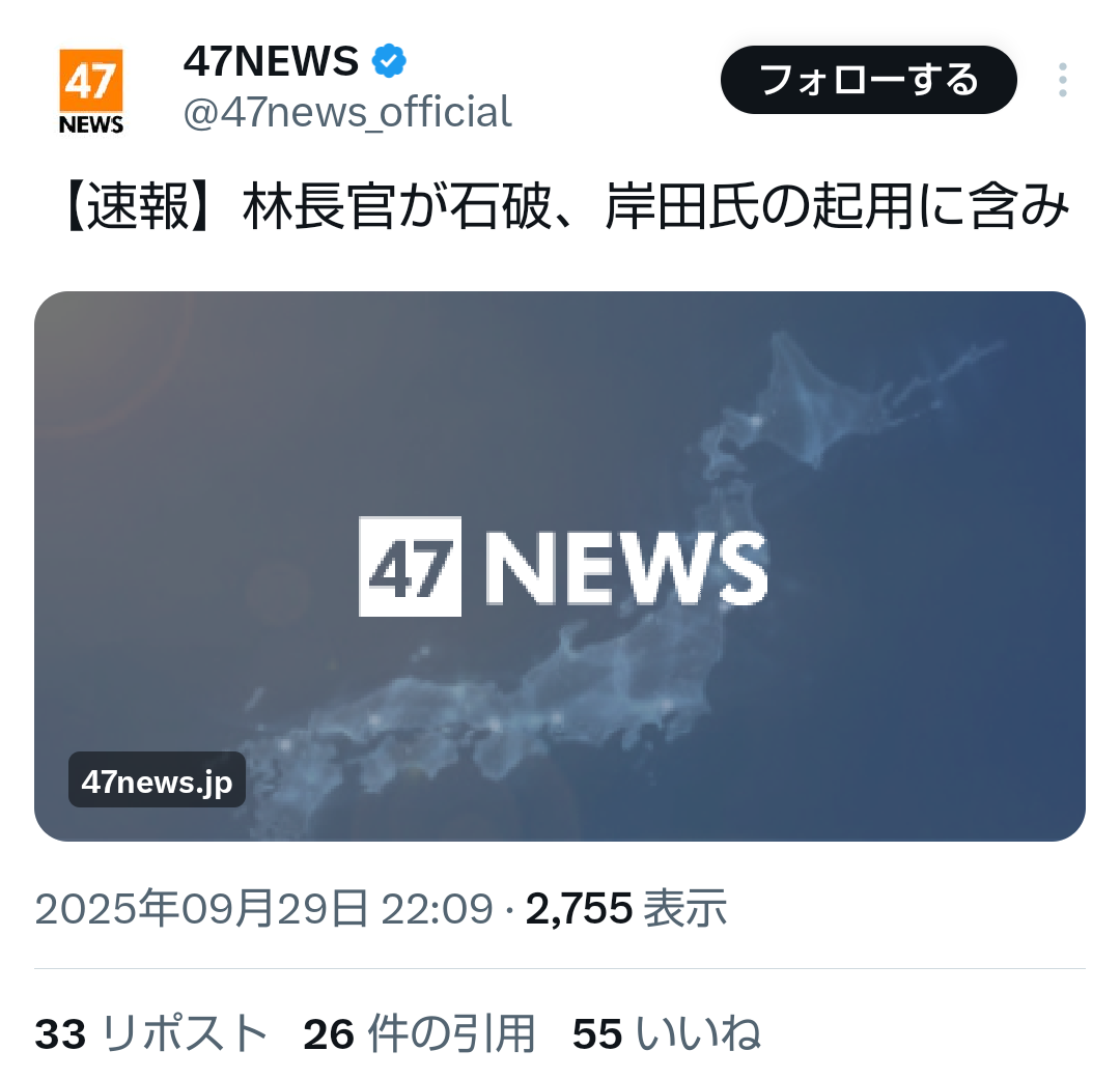 … | 539無題Name名無し 25/10/02(木)20:04:37No.748417そうだねx1>小泉氏「今から人事の話するわけない」 |