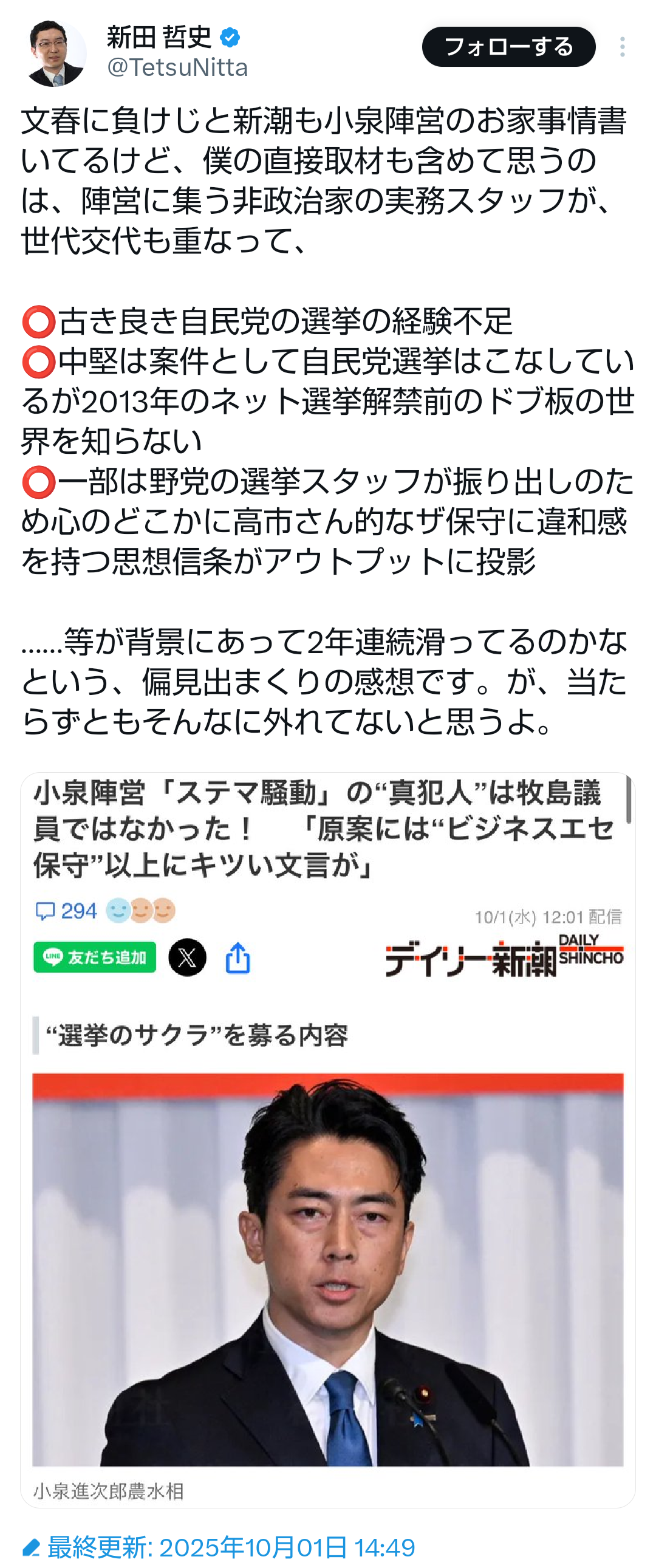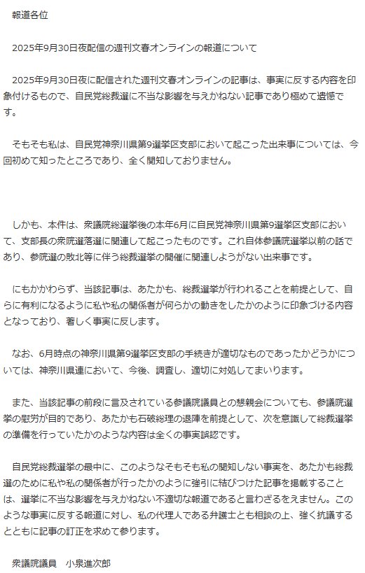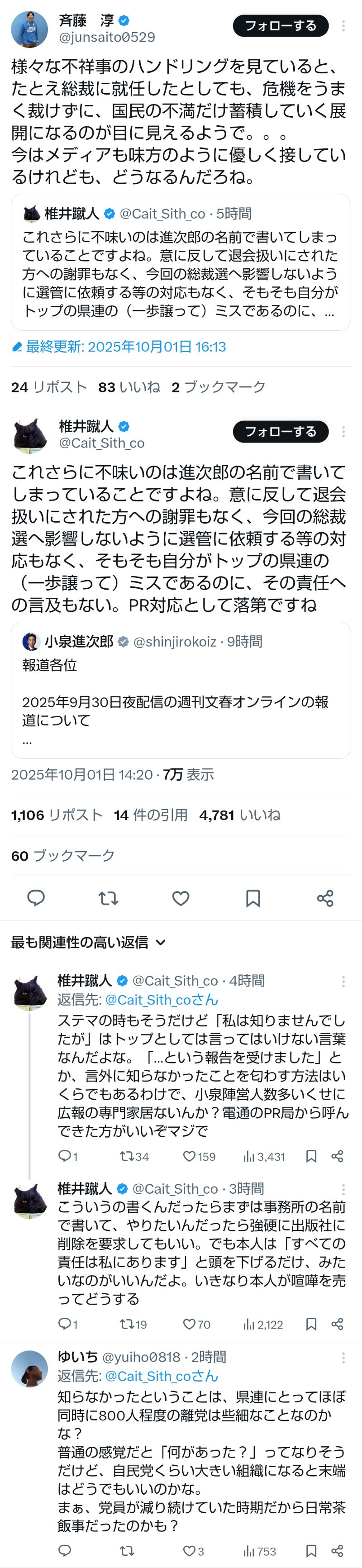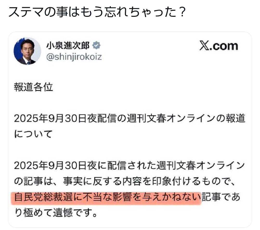 … | 40無題Name名無し 25/09/29(月)11:05:10No.747877そうだねx1小泉進次郎陣営のステマ問題 |
