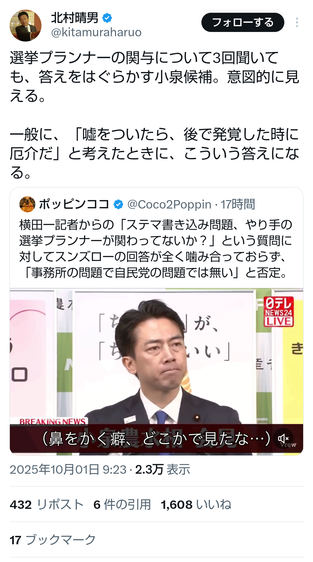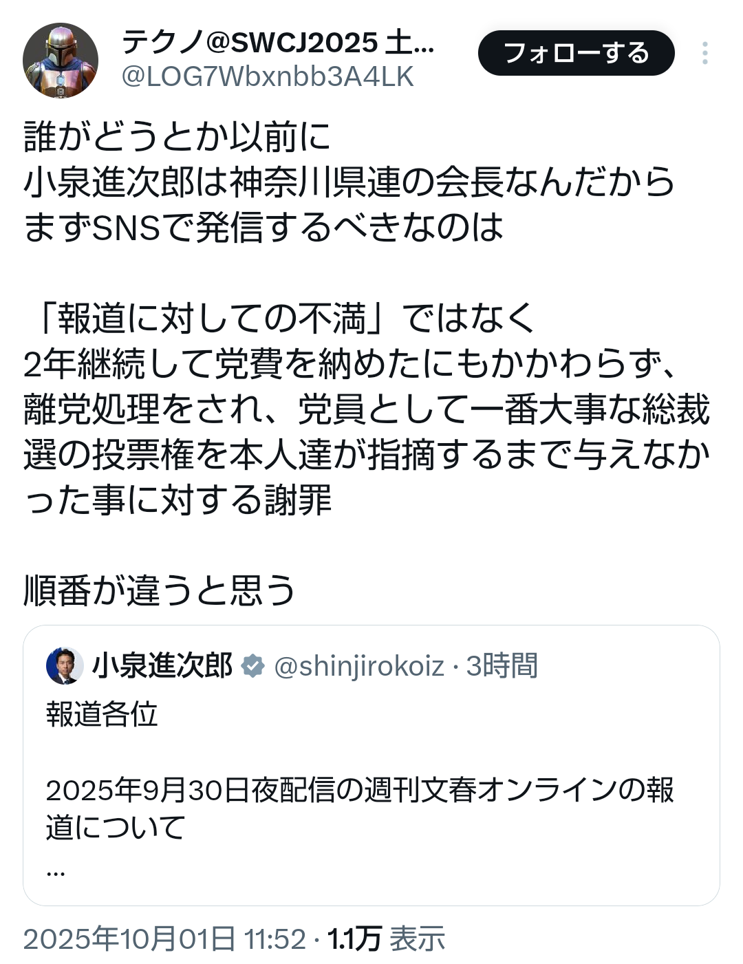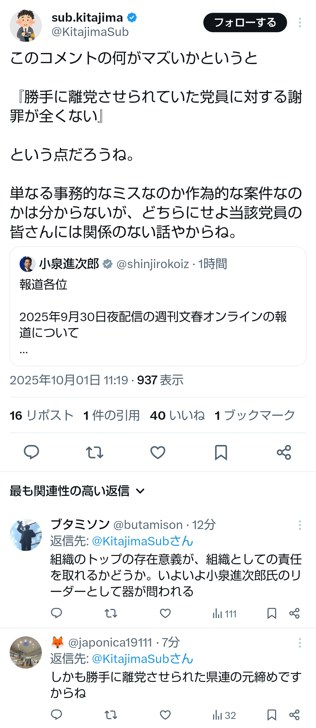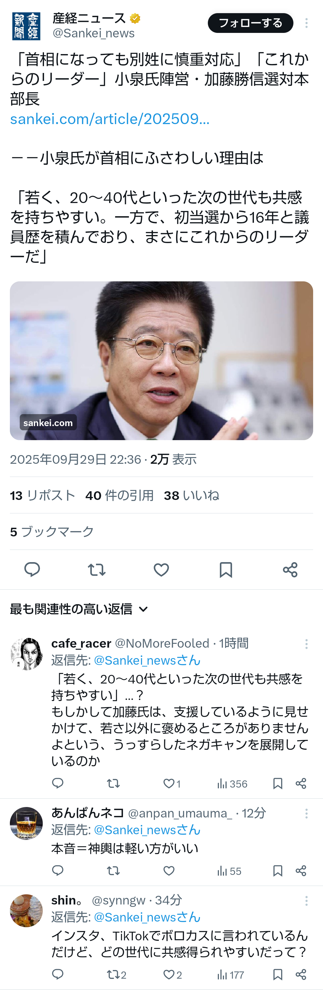 … | 40無題Name名無し 25/09/29(月)11:05:10No.747877そうだねx1小泉進次郎陣営のステマ問題 |