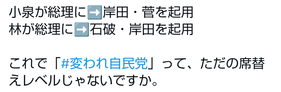 … | 27無題Name名無し 25/09/29(月)09:29:13No.747864+この状況でも派閥のボスが「小泉じゃのー!」って言ったら進次郎に投票すんのかな下っ端は |