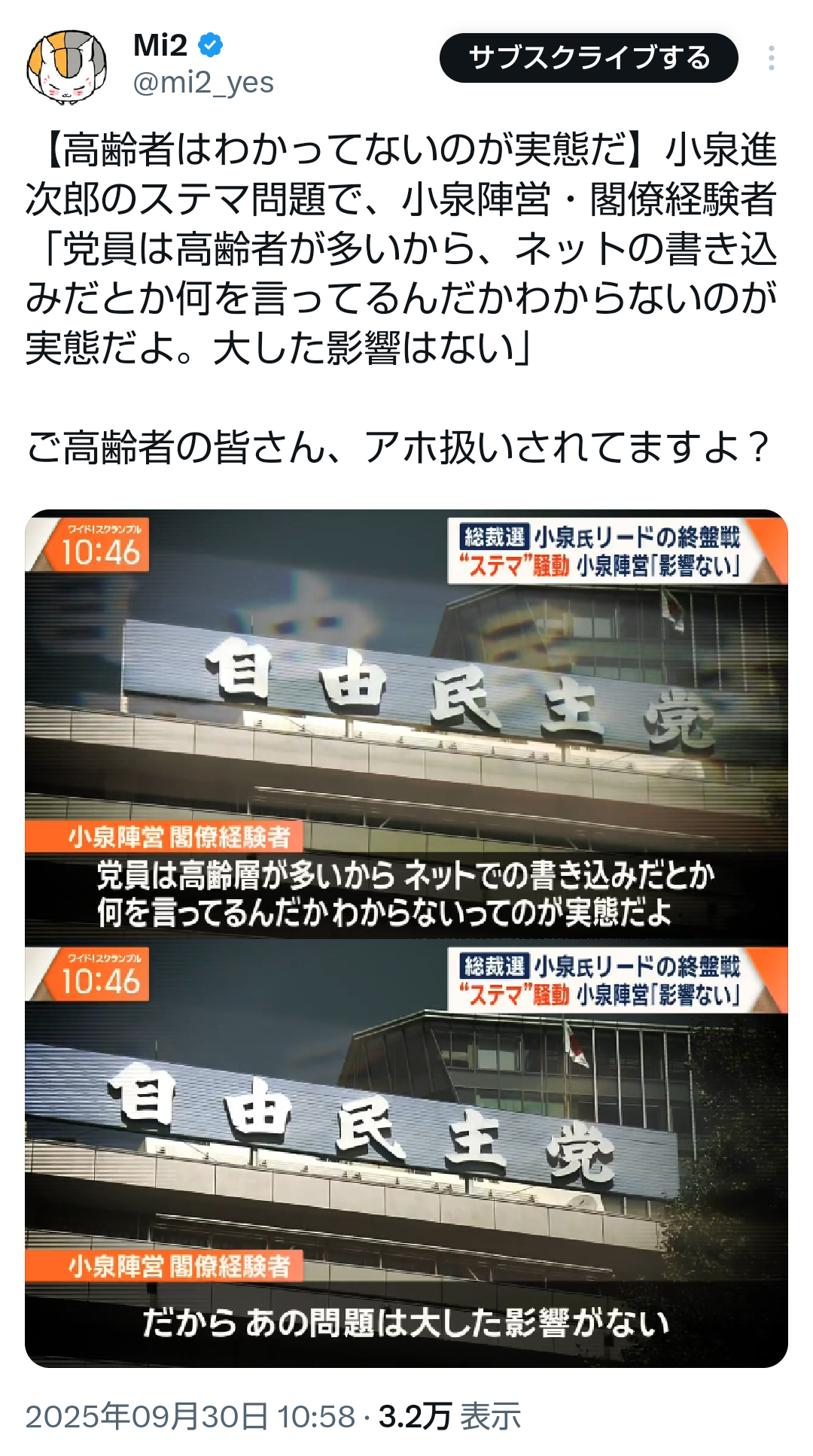 … | 518無題Name名無し 25/10/02(木)17:53:22No.748391+ 1759395202540.png-(745254 B) ![]() https://x.com/mi2_yes/status/1973668148462379091 |