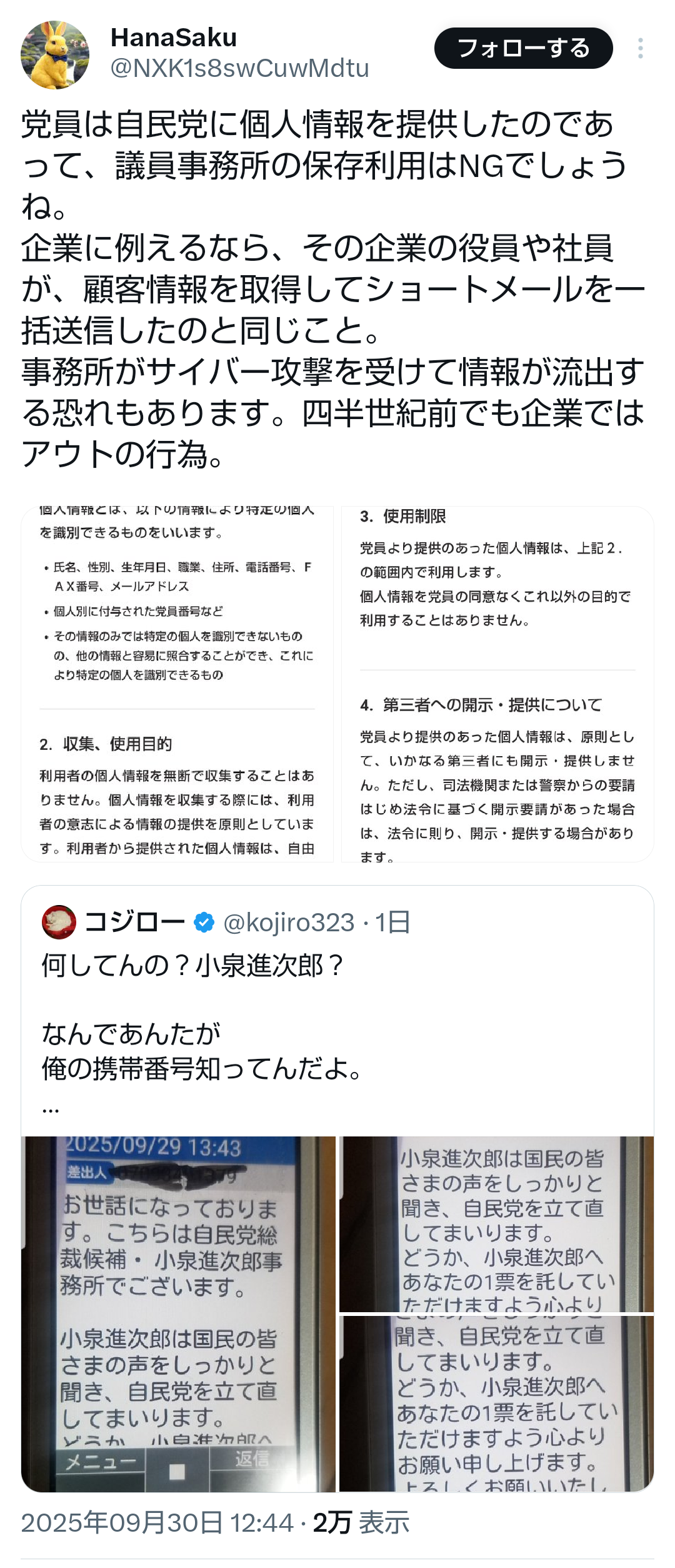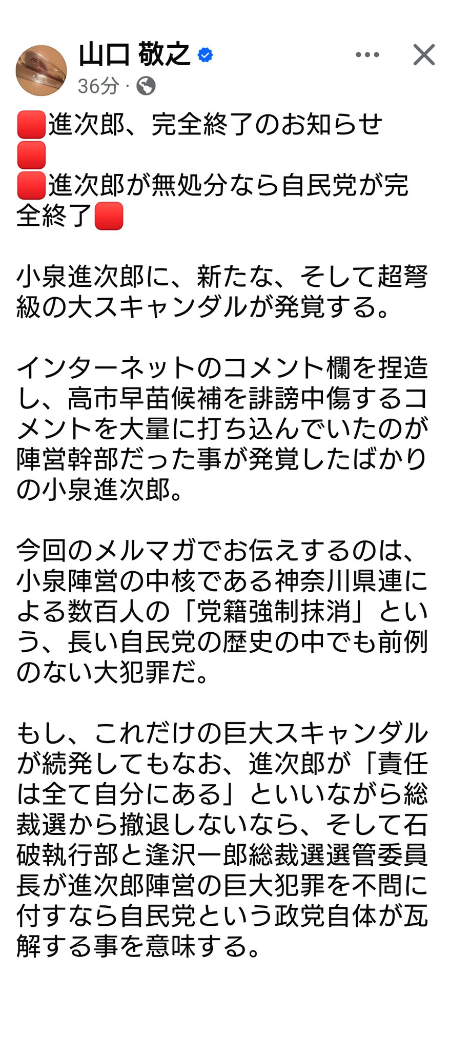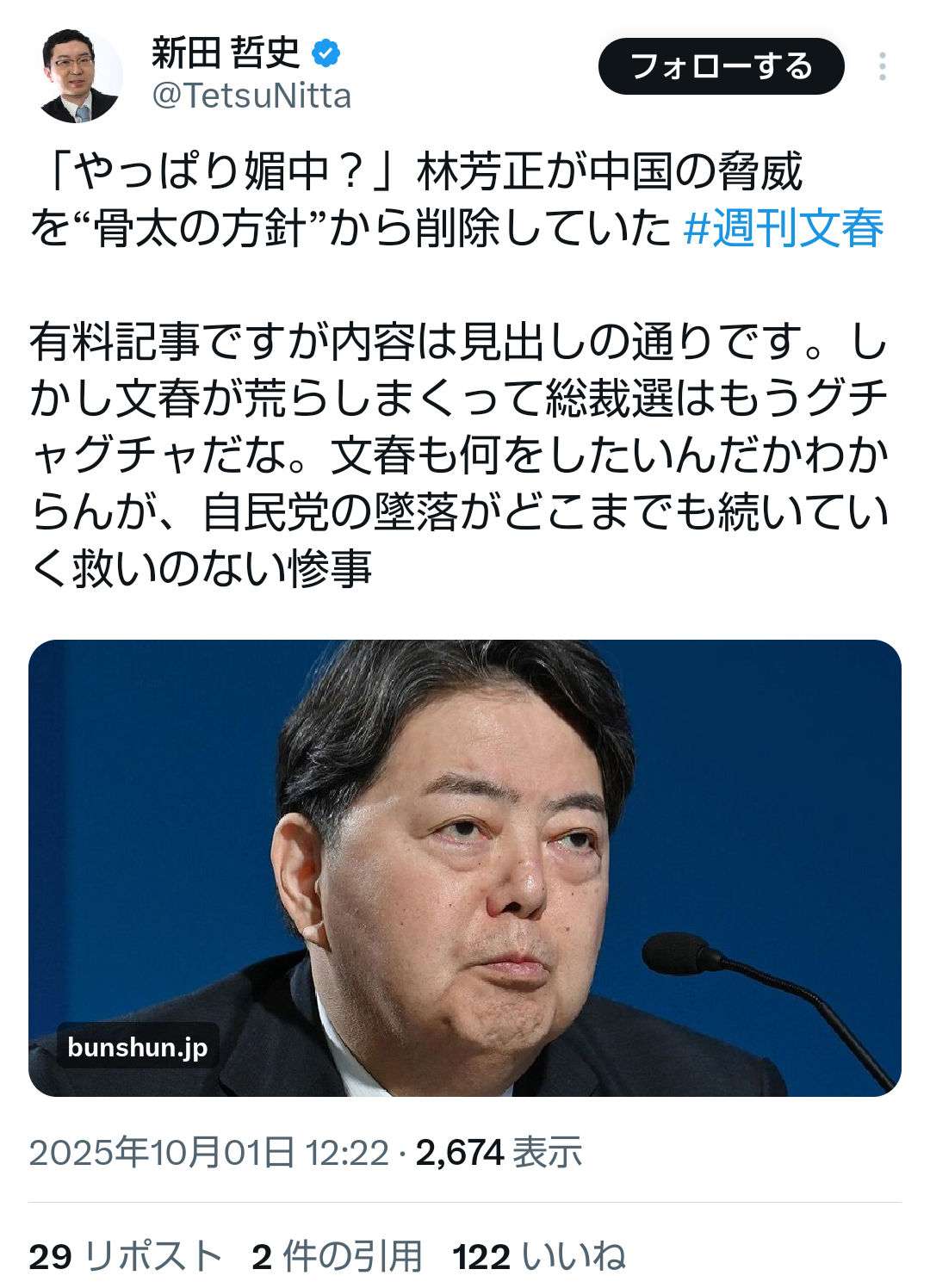 … | 67無題Name名無し 25/09/29(月)14:45:17No.747904+>ステマ以前に問題は自民自体がガバガバセキュリティ状態だってことが露見したことこれマスコミに情報ダダ漏れだろ |