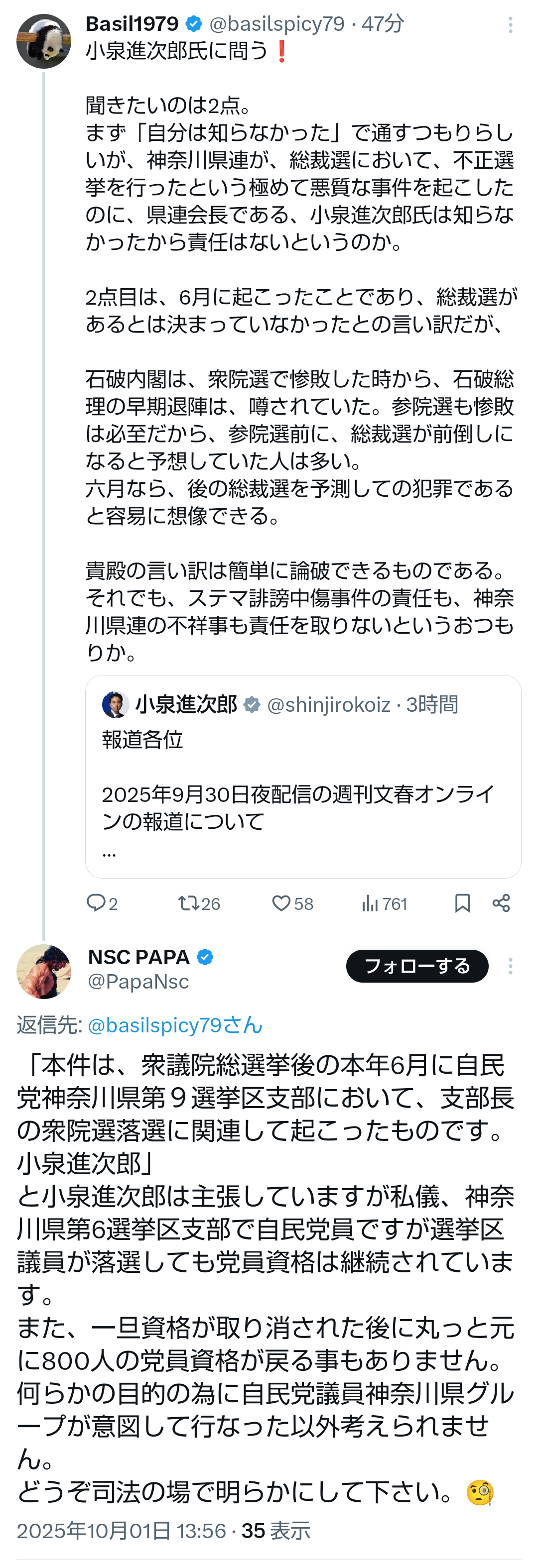 … | 507無題Name名無し 25/10/02(木)16:49:37No.748380+>小泉で選挙勝てないと思うけど勝てると思ってるのかな…議員の人達 |