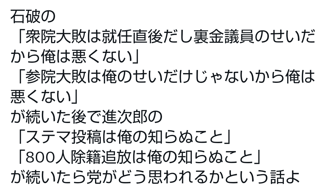 … | 516無題Name名無し 25/10/02(木)17:39:27No.748389そうだねx2シンジローの舌禍でこうなってるんじゃなくて陣営全部がバカな所為だから |