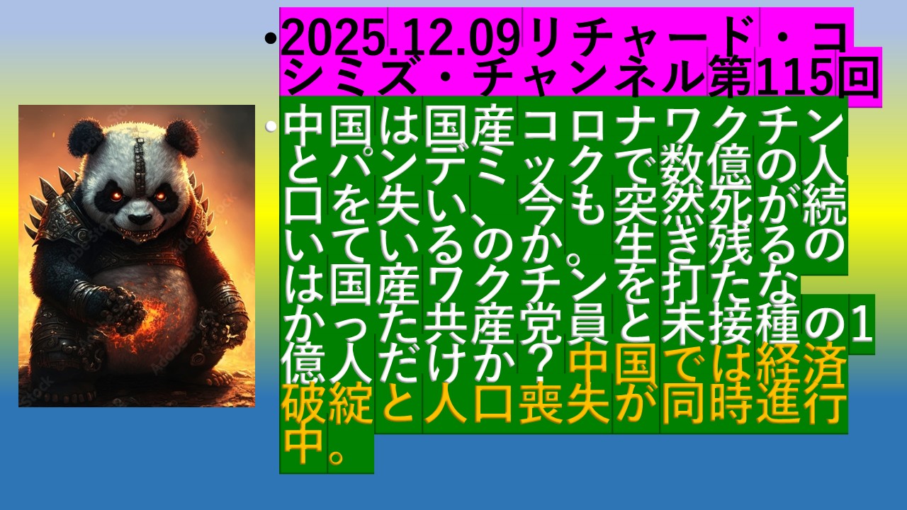 2025.12.09 リチャード・コシミズ・チャンネル第115回削除された記事が1件あります.見る