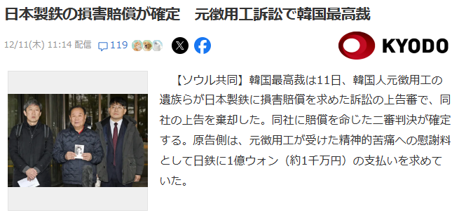 | … | 14無題Name名無し 25/12/11(木)13:22:11No.764673そうだねx1>【速報】韓国最高裁、日本製鉄に賠償命令 |