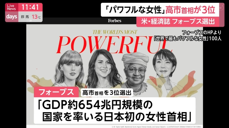 | … | 17無題Name名無し 25/12/11(木)14:14:41No.764677そうだねx3 1765430081077.jpg-(172358 B) >米経済誌フォーブス、高市早苗首相を「世界で最もパワフルな女性100人」で3位に選出 |