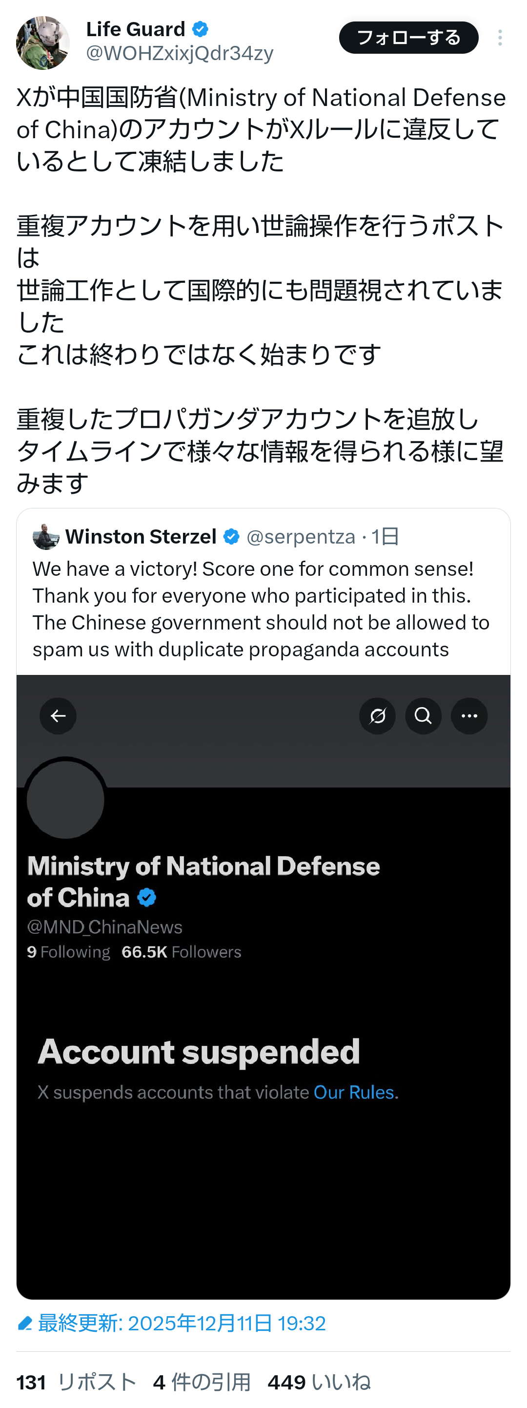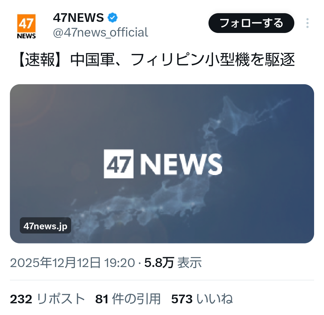 | … | 49無題Name名無し 25/12/11(木)18:28:56No.764711+日本の外信以外で中国の通信公開について報道したメディアなかったって |